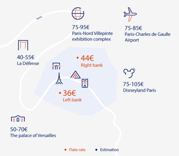 👉 パリ・オルリー空港とパリ左岸間の料金は?36ユーロ*。