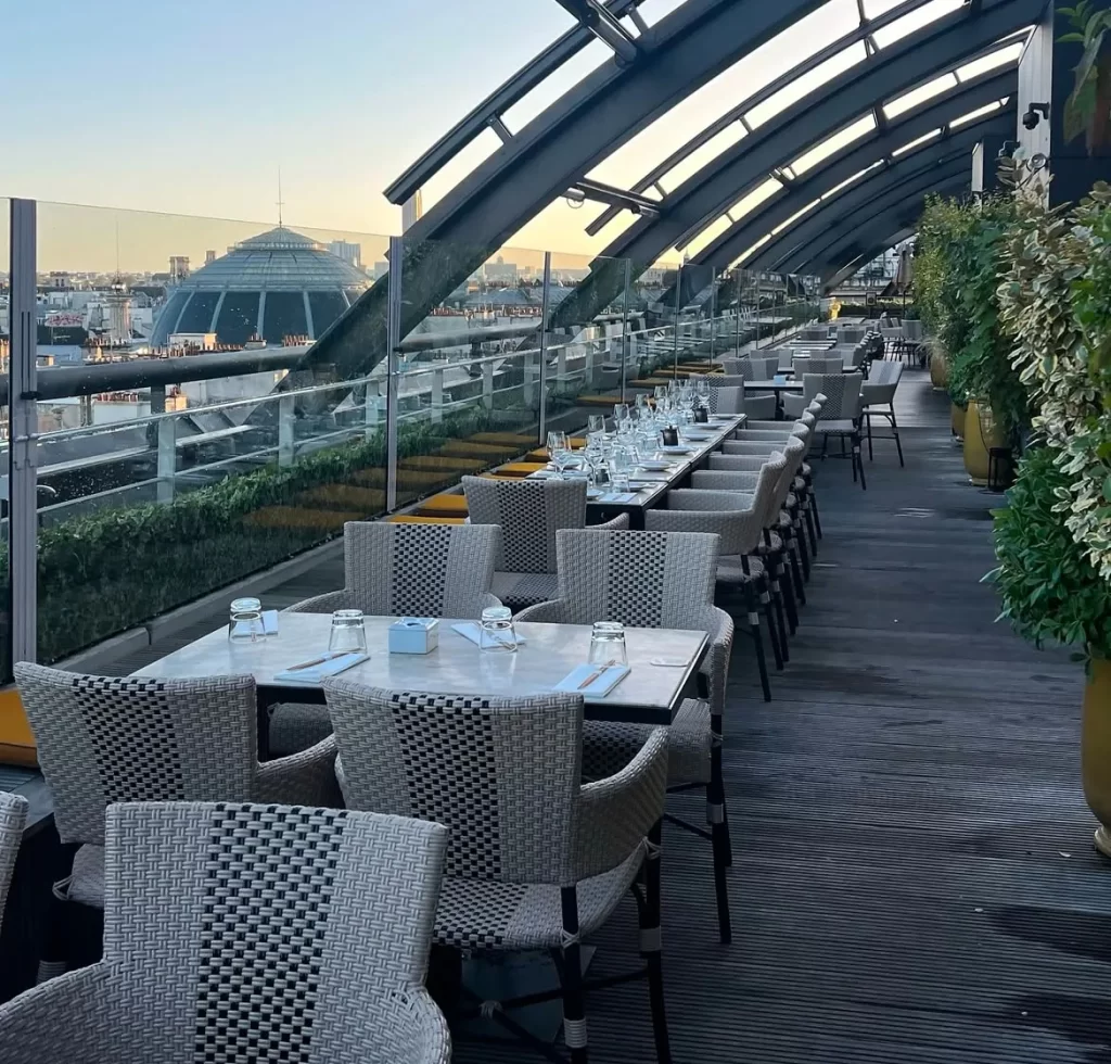 | ROOF | 緑豊かな屋上庭園からパリを一望。夕暮れに一杯楽しむのに最適な都会のオアシスです。 |